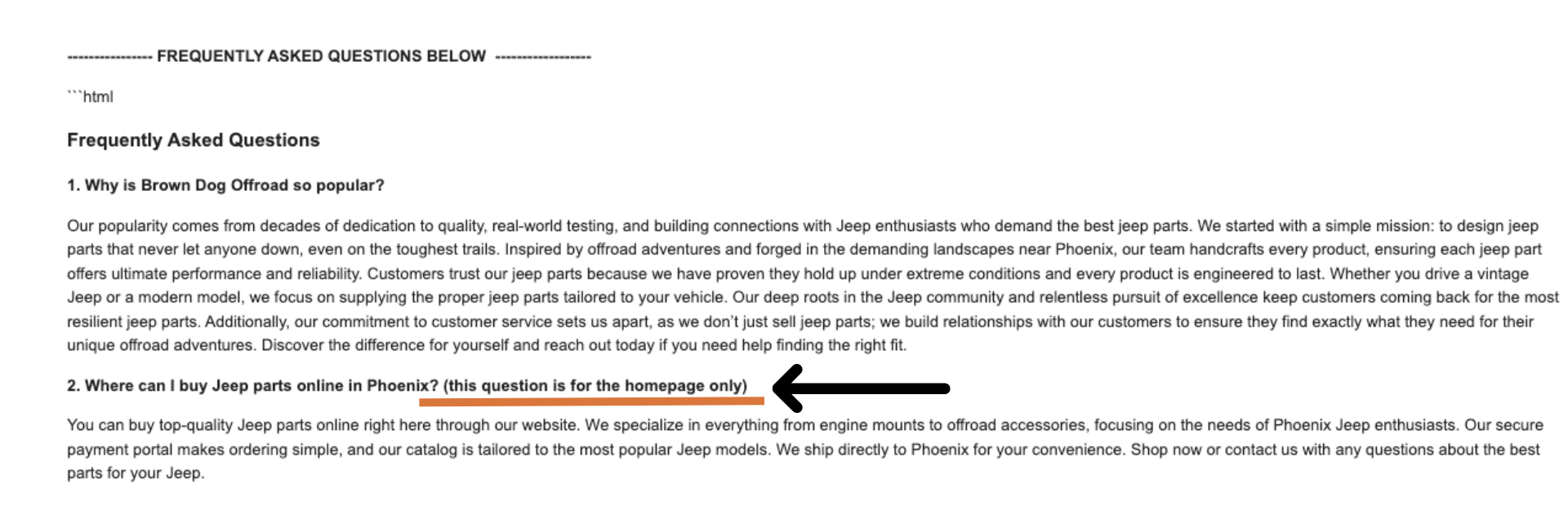 Hey team! We're seeing great progress in setting up our new dynamic location pages, especially with consistently removing Question #1 from the FAQs—nice job!