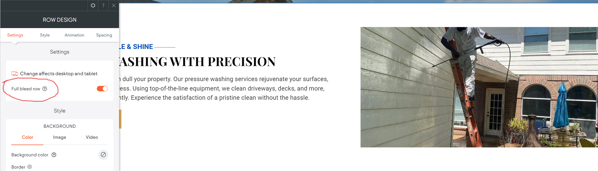 Using the "Full Bleed Row" option causes section elements to stretch across the screen, which reduces negative space and "stretches" out text and images. With very little text and/or a vertical image added to this equation, the chances of the focal point of the image becoming distorted or hidden are very high. This is something you want to AVOID, so toggling "off" the "Full Bleed Row" option could help to solve this issue, as it did with the example site below: